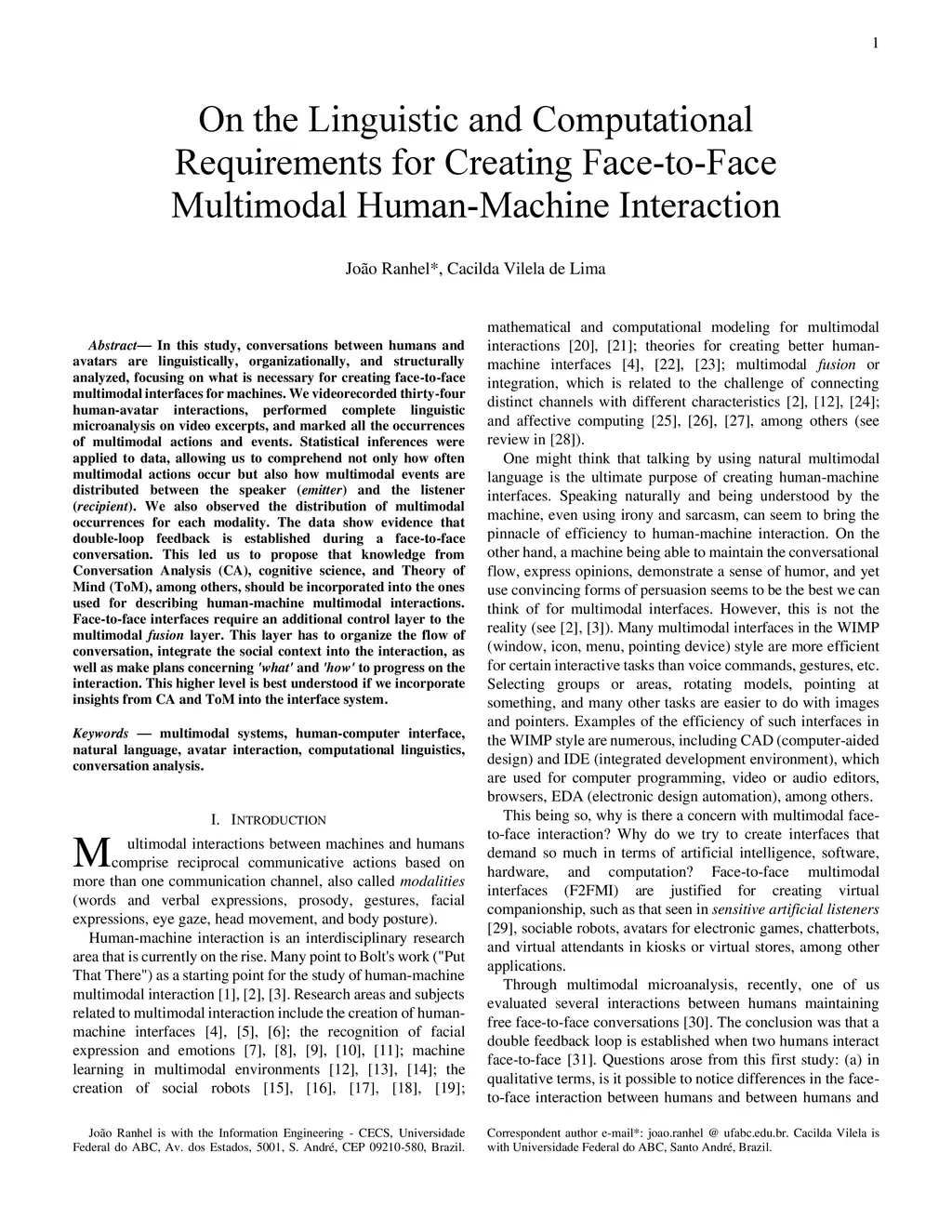 Face-to-Face Multimodal Human-Machine Interaction