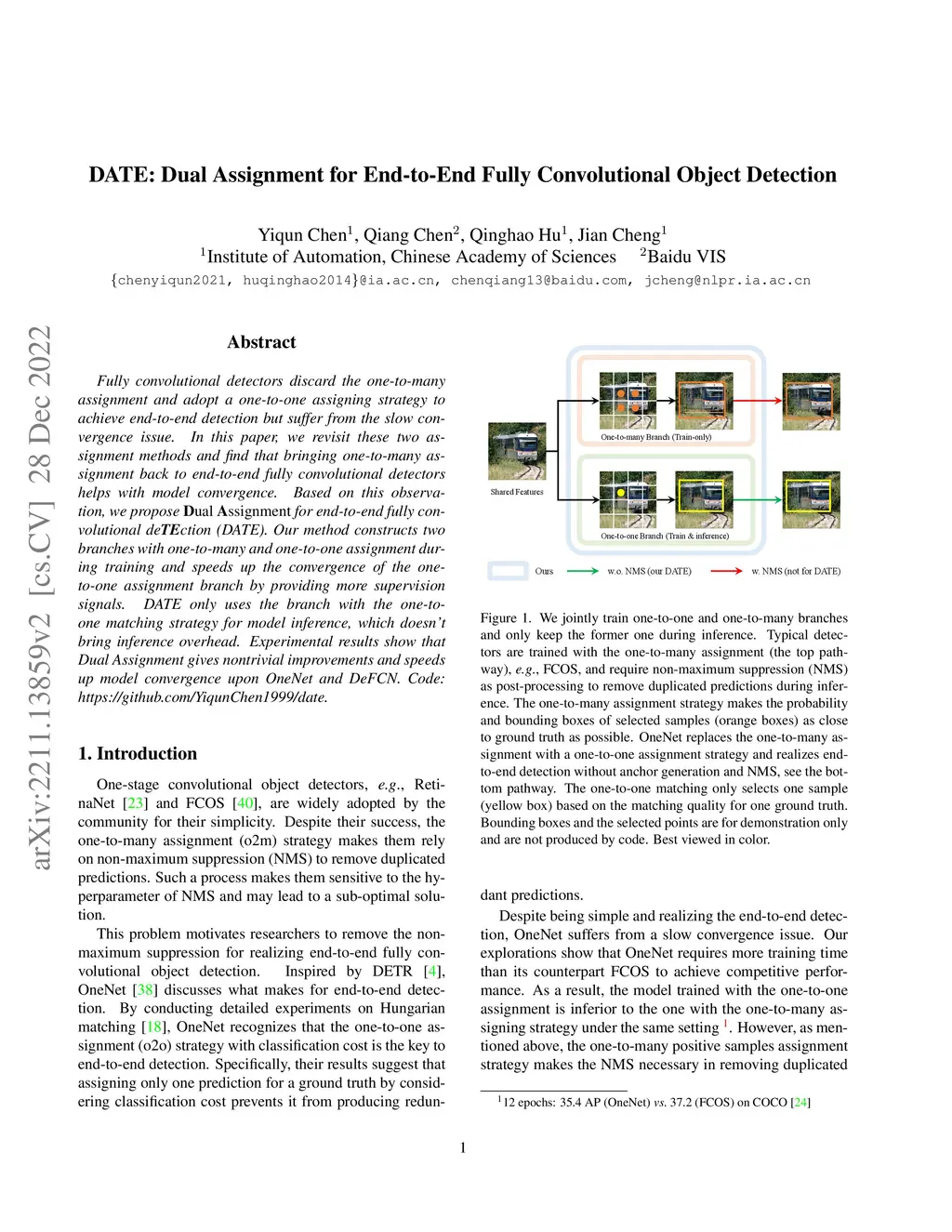 DATE: Dual Assignment for End-to-End Fully Convolutional Object