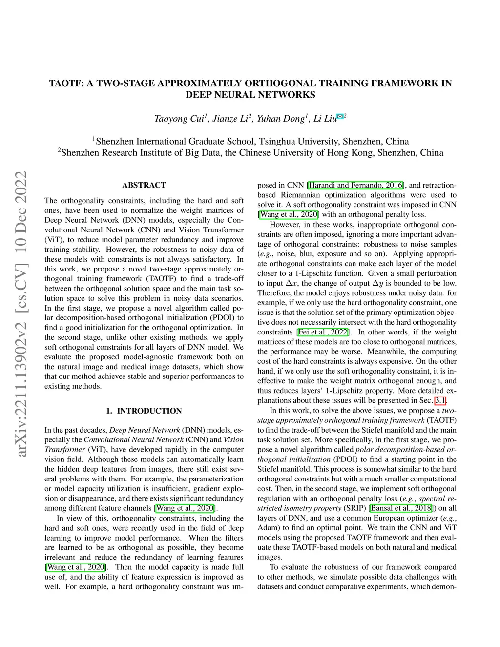 TAOTF: A Two-stage Approximately Orthogonal Training Framework in Deep