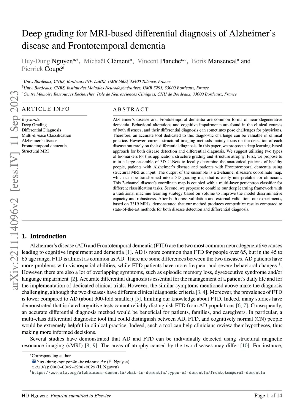 Deep grading for MRI-based differential diagnosis of Alzheimer's disease