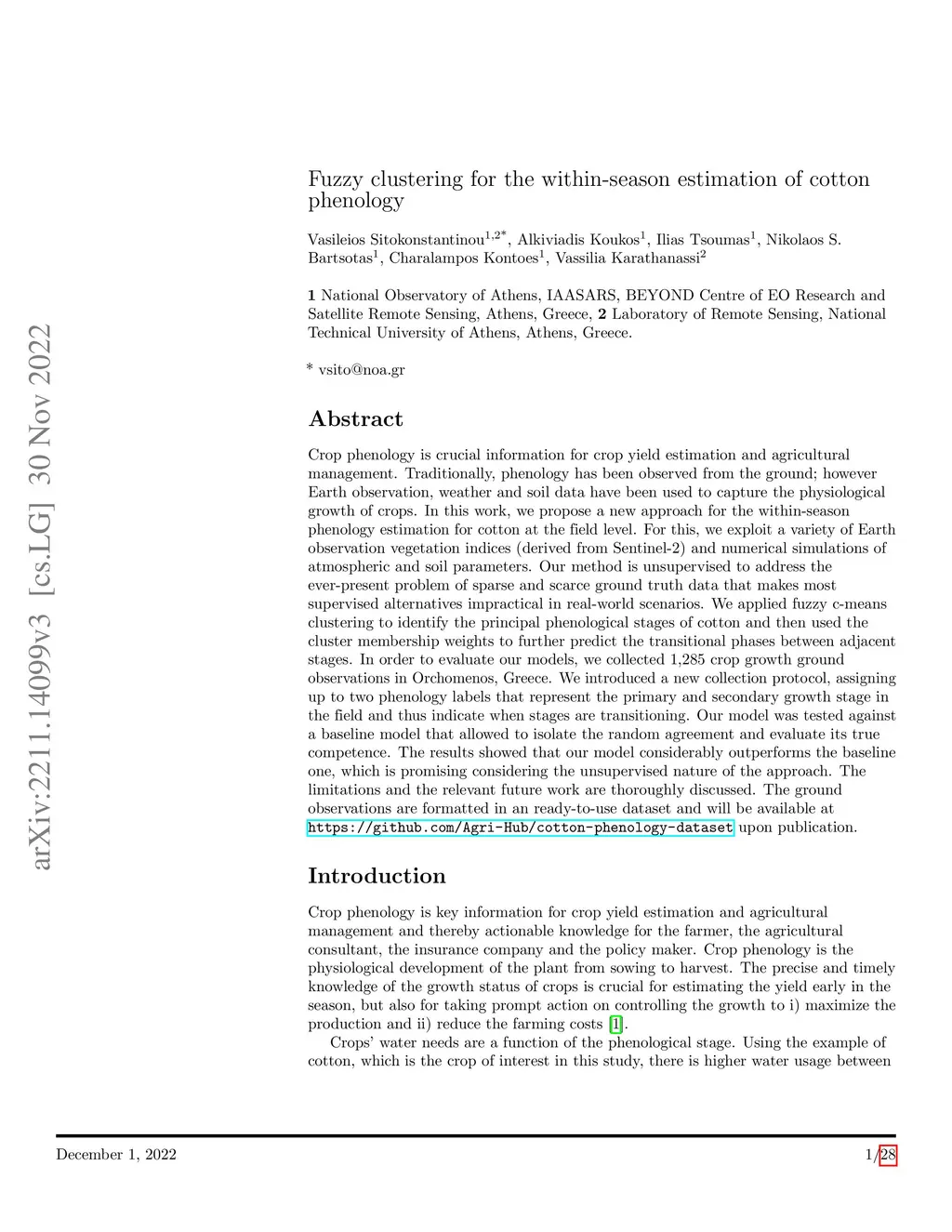 Fuzzy clustering for the within-season estimation of cotton phenology