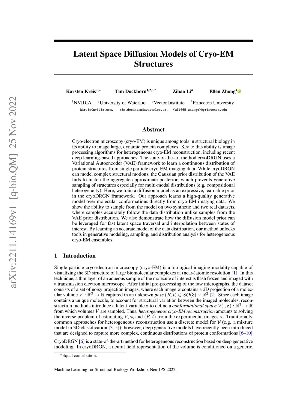 Latent Space Diffusion Models of Cryo-EM Structures