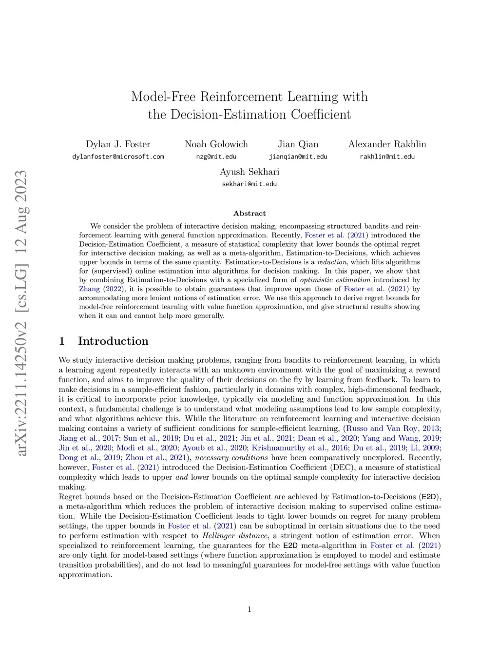 Model-Free Reinforcement Learning with the Decision-Estimation