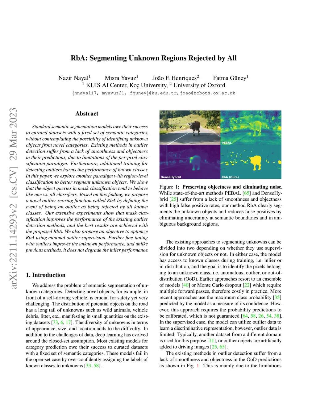 Standard semantic segmentation models owe their success to curated datasets with a fixed set of semantic categories, without contemplating the possibility of identifying unknown objects from novel categories. Existing methods in outlier detection suffer from a lack of smoothness and objectness in their predictions, due to limitations of the per-pixel classification paradigm. Furthermore, additional training for detecting outliers harms the performance of known classes. In this paper, we explore another paradigm with region-level classification to better segment unknown objects. We show that the object queries in mask classification tend to behave like one \vs all classifiers. Based on this finding, we propose a novel outlier scoring function called RbA by defining the event of being an outlier as being rejected by all known classes. Our extensive experiments show that mask classification improves the performance of the existing outlier detection methods, and the best results are achieved with the proposed RbA. We also propose an objective to optimize RbA using minimal outlier supervision. Further fine-tuning with outliers improves the unknown performance, and unlike previous methods, it does not degrade the inlier performance.