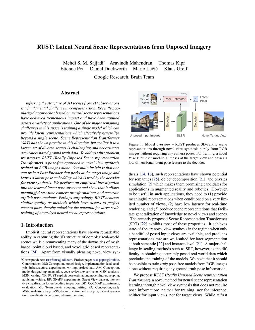 RUST: Latent Neural Scene Representations from Unposed Imagery