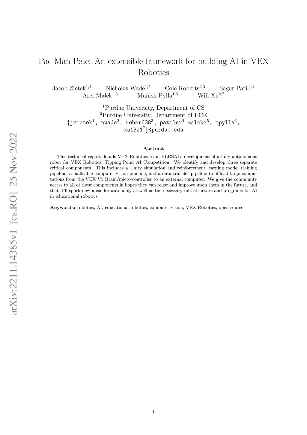 Pac-Man Pete: An extensible framework for building AI in VEX Robotics