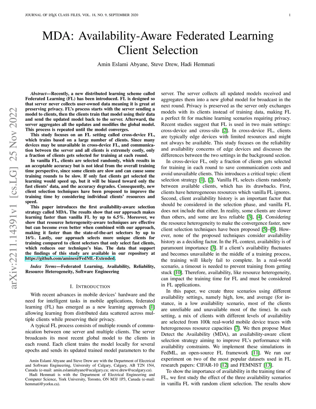MDA: Availability-Aware Federated Learning Client Selection