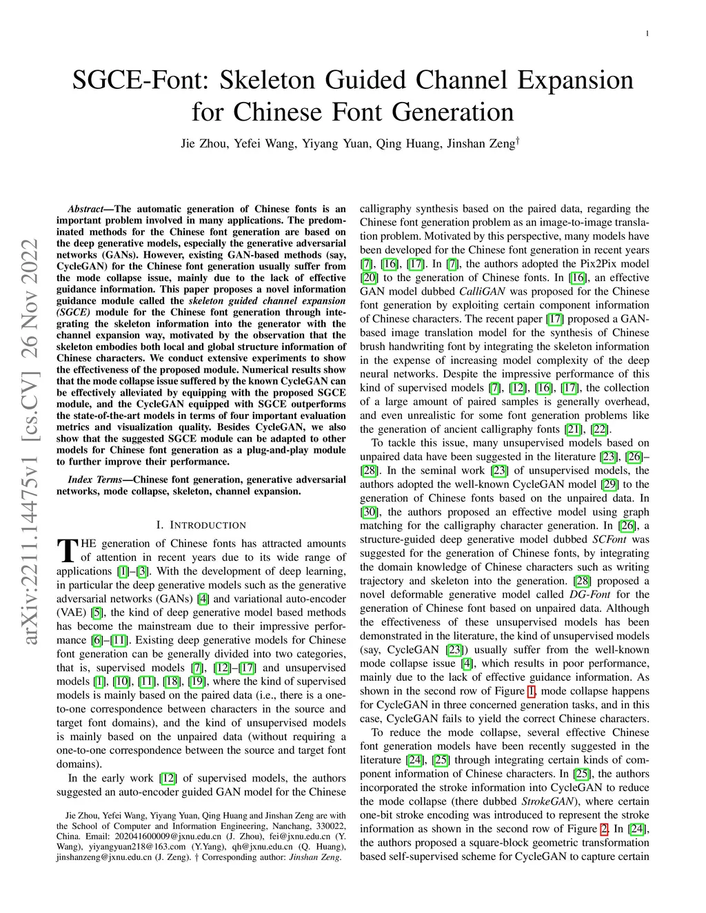 SGCE-Font: Skeleton Guided Channel Expansion for Chinese Font Generation