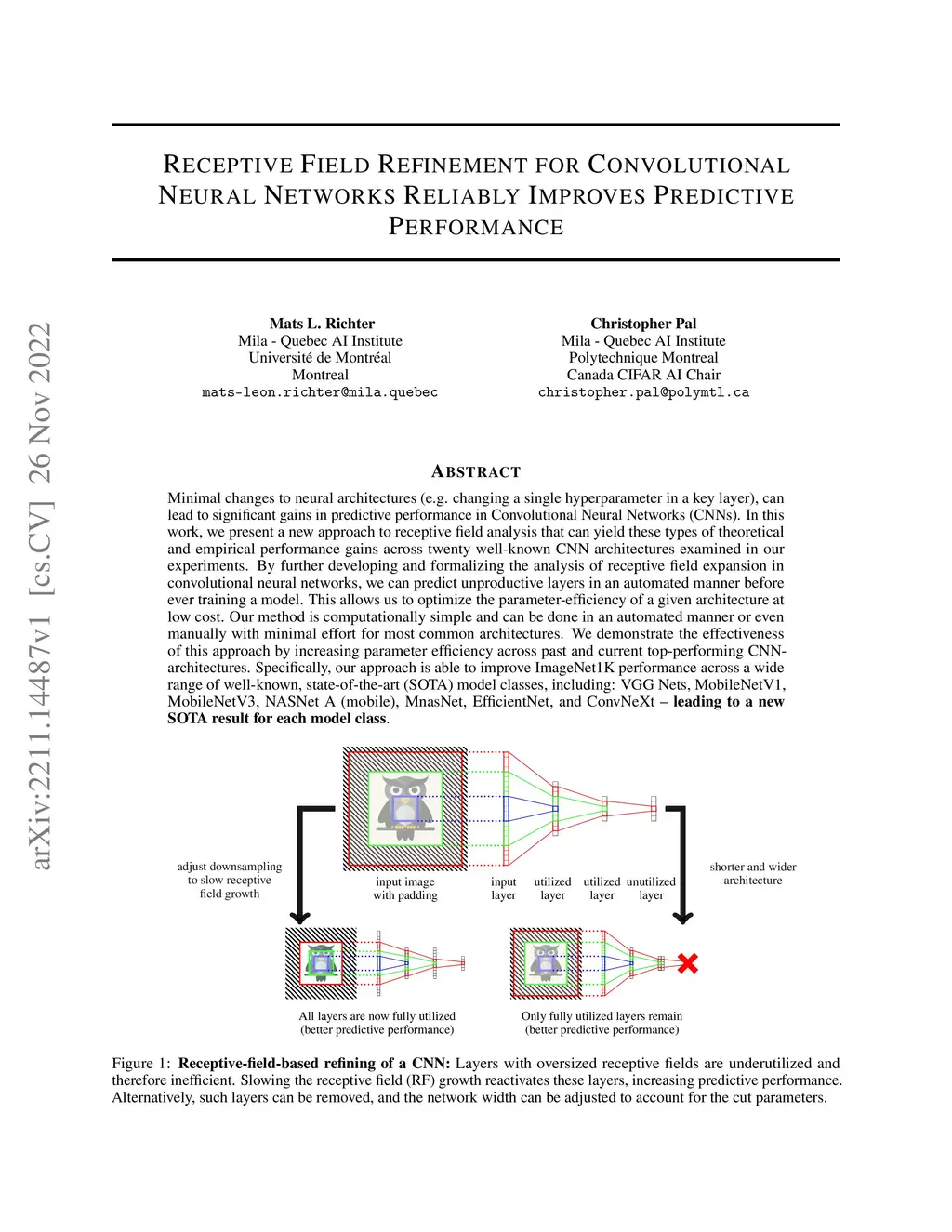 Minimal changes to neural architectures (e.g. changing a single hyperparameter in a key layer), can lead to significant gains in predictive performance in Convolutional Neural Networks (CNNs). In this work, we present a new approach to receptive field analysis that can yield these types of theoretical and empirical performance gains across twenty well-known CNN architectures examined in our experiments. By further developing and formalizing the analysis of receptive field expansion in convolutional neural networks, we can predict unproductive layers in an automated manner before ever training a model. This allows us to optimize the parameter-efficiency of a given architecture at low cost. Our method is computationally simple and can be done in an automated manner or even manually with minimal effort for most common architectures. We demonstrate the effectiveness of this approach by increasing parameter efficiency across past and current top-performing CNN-architectures. Specifically, our approach is able to improve ImageNet1K performance across a wide range of well-known, state-of-the-art (SOTA) model classes, including: VGG Nets, MobileNetV1, MobileNetV3, NASNet A (mobile), MnasNet, EfficientNet, and ConvNeXt - leading to a new SOTA result for each model class.