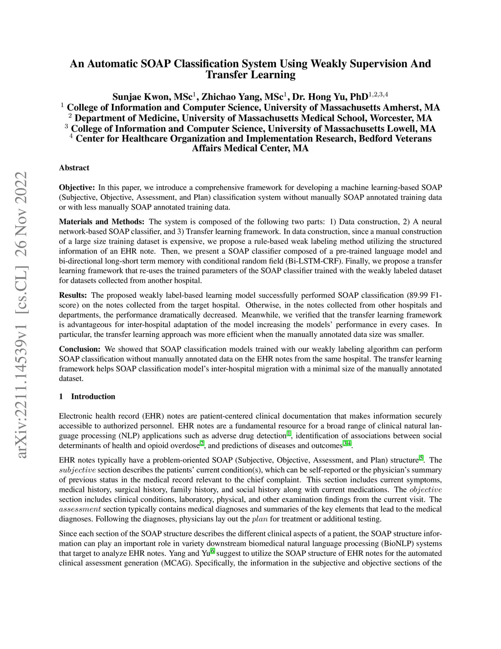 An Automatic SOAP Classification System Using Weakly Supervision And
