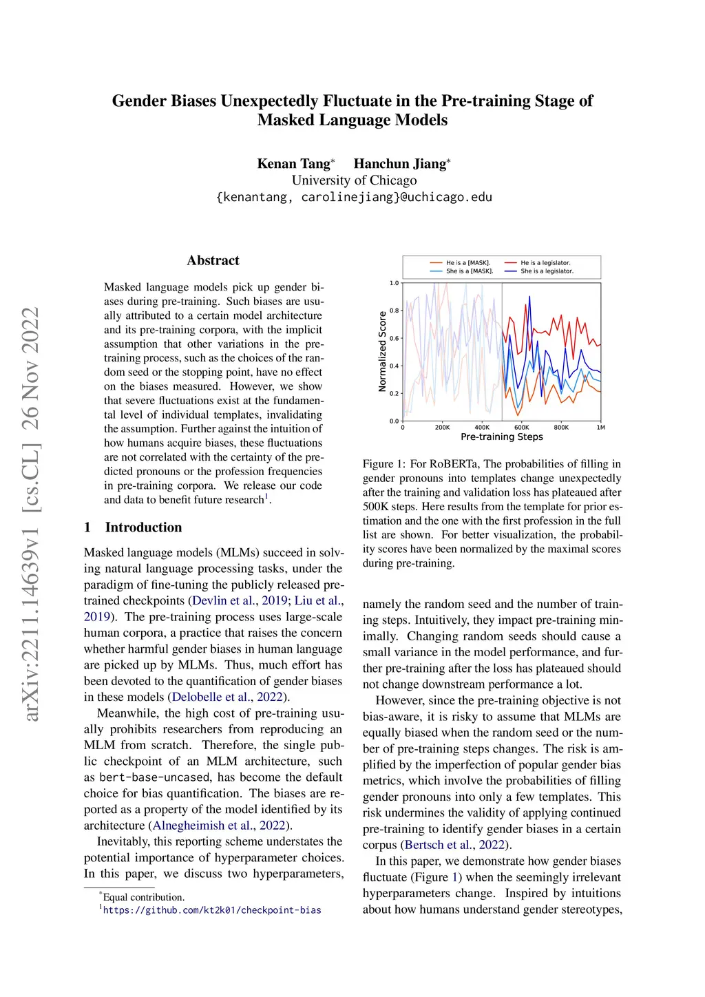 Masked language models pick up gender biases during pre-training. Such biases are usually attributed to a certain model architecture and its pre-training corpora, with the implicit assumption that other variations in the pre-training process, such as the choices of the random seed or the stopping point, have no effect on the biases measured. However, we show that severe fluctuations exist at the fundamental level of individual templates, invalidating the assumption. Further against the intuition of how humans acquire biases, these fluctuations are not correlated with the certainty of the predicted pronouns or the profession frequencies in pre-training corpora. We release our code and data to benefit future research.