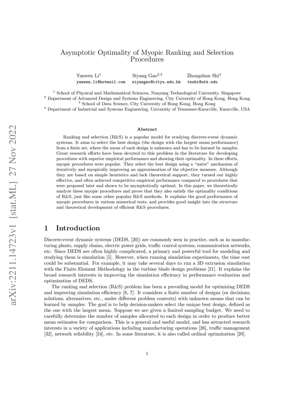 Ranking and selection (R&S) is a popular model for studying discrete-event dynamic systems. It aims to select the best design (the design with the largest mean performance) from a finite set, where the mean of each design is unknown and has to be learned by samples. Great research efforts have been devoted to this problem in the literature for developing procedures with superior empirical performance and showing their optimality. In these efforts, myopic procedures were popular. They select the best design using a ñaive' mechanism of iteratively and myopically improving an approximation of the objective measure. Although they are based on simple heuristics and lack theoretical support, they turned out highly effective, and often achieved competitive empirical performance compared to procedures that were proposed later and shown to be asymptotically optimal. In this paper, we theoretically analyze these myopic procedures and prove that they also satisfy the optimality conditions of R&S, just like some other popular R&S methods. It explains the good performance of myopic procedures in various numerical tests, and provides good insight into the structure and theoretical development of efficient R&S procedures.