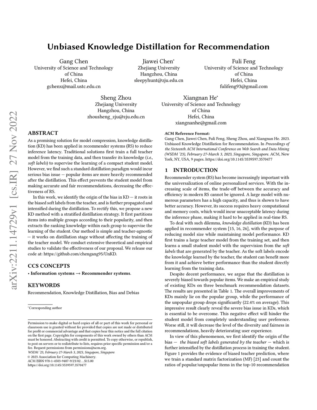 As a promising solution for model compression, knowledge distillation (KD) has been applied in recommender systems (RS) to reduce inference latency. Traditional solutions first train a full teacher model from the training data, and then transfer its knowledge (\ie \textit{soft labels}) to supervise the learning of a compact student model. However, we find such a standard distillation paradigm would incur serious bias issue -- popular items are more heavily recommended after the distillation. This effect prevents the student model from making accurate and fair recommendations, decreasing the effectiveness of RS. In this work, we identify the origin of the bias in KD -- it roots in the biased soft labels from the teacher, and is further propagated and intensified during the distillation. To rectify this, we propose a new KD method with a stratified distillation strategy. It first partitions items into multiple groups according to their popularity, and then extracts the ranking knowledge within each group to supervise the learning of the student. Our method is simple and teacher-agnostic -- it works on distillation stage without affecting the training of the teacher model. We conduct extensive theoretical and empirical studies to validate the effectiveness of our proposal. We release our code at: https://github.com/chengang95/UnKD.