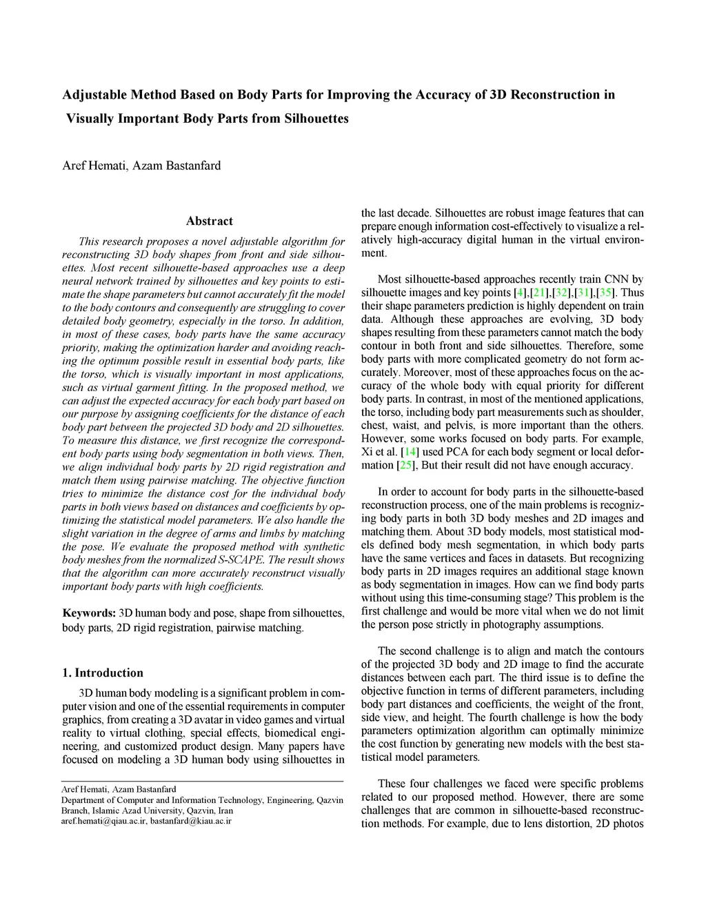 Adjustable Method Based on Body Parts for Improving the Accuracy of 3D