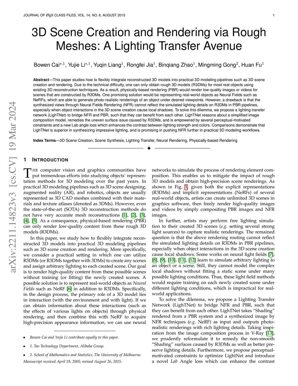 3D Scene Creation and Rendering via Rough Meshes: A Lighting Transfer