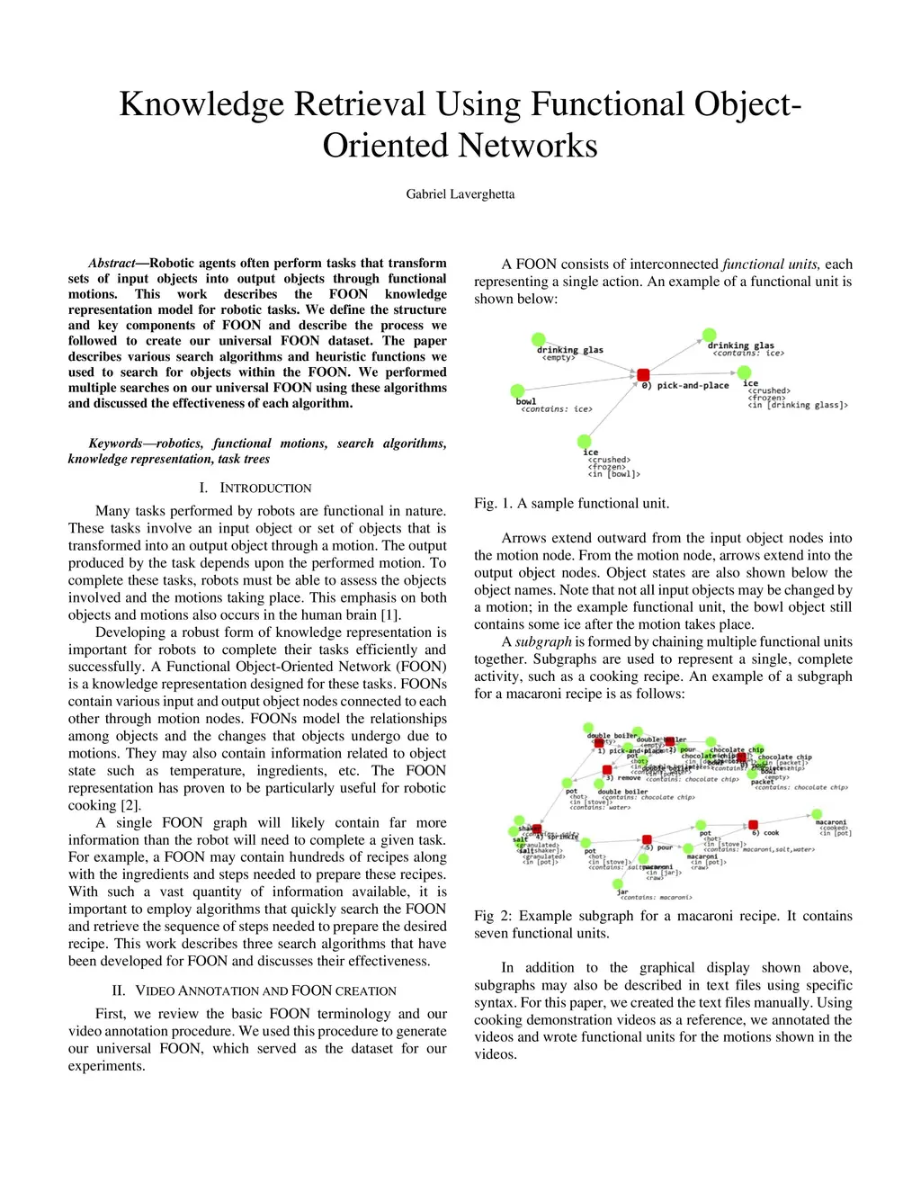Robotic agents often perform tasks that transform sets of input objects into output objects through functional motions. This work describes the FOON knowledge representation model for robotic tasks. We define the structure and key components of FOON and describe the process we followed to create our universal FOON dataset. The paper describes various search algorithms and heuristic functions we used to search for objects within the FOON. We performed multiple searches on our universal FOON using these algorithms and discussed the effectiveness of each algorithm.