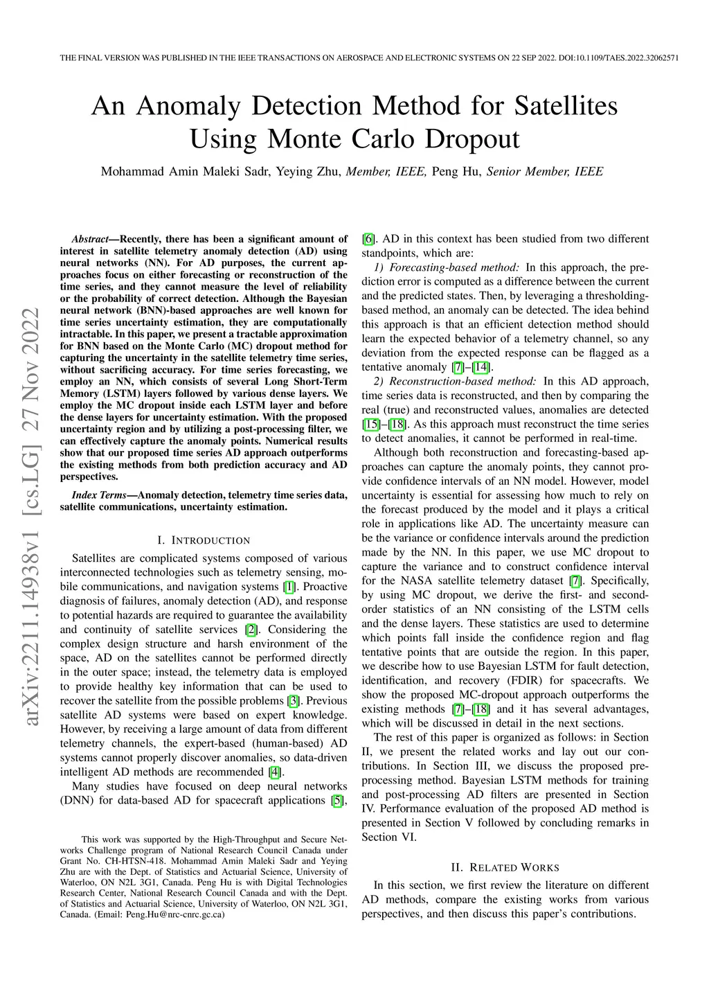 An Anomaly Detection Method for Satellites Using Monte Carlo Dropout
