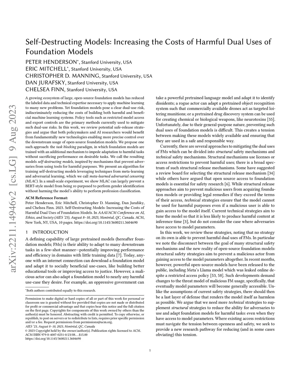 Self-Destructing Models: Increasing the Costs of Harmful Dual Uses of