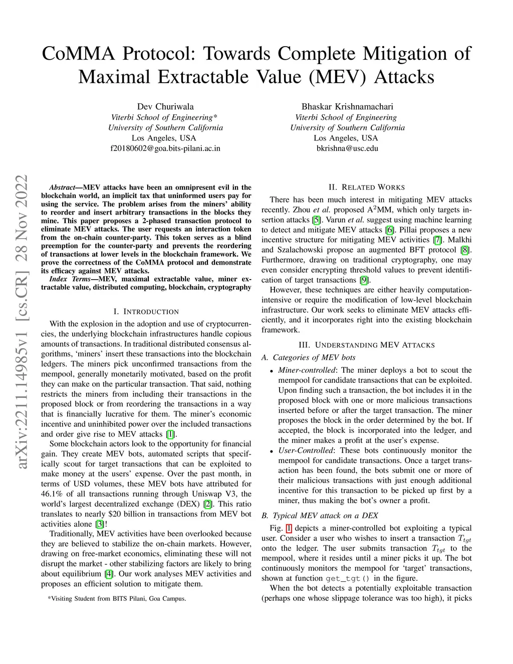 MEV attacks have been an omnipresent evil in the blockchain world, an implicit tax that uninformed users pay for using the service. The problem arises from the miners' ability to reorder and insert arbitrary transactions in the blocks they mine. This paper proposes a 2-phased transaction protocol to eliminate MEV attacks. The user requests an interaction token from the on-chain counter-party. This token serves as a blind preemption for the counter-party and prevents the reordering of transactions at lower levels in the blockchain framework. We prove the correctness of the CoMMA protocol and demonstrate its efficacy against MEV attacks.