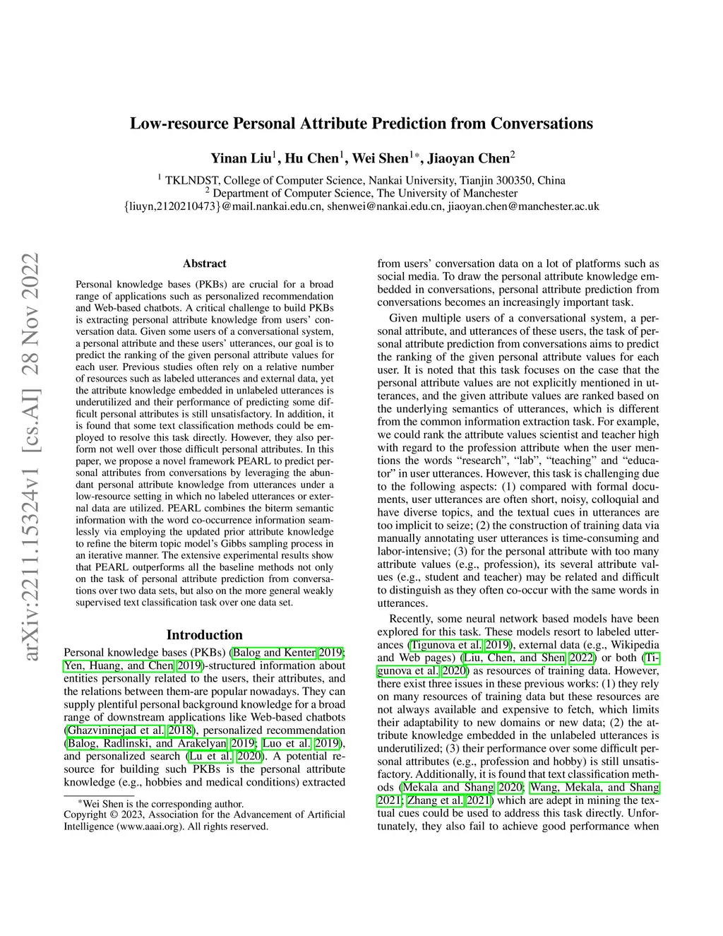 Low-resource Personal Attribute Prediction from Conversation