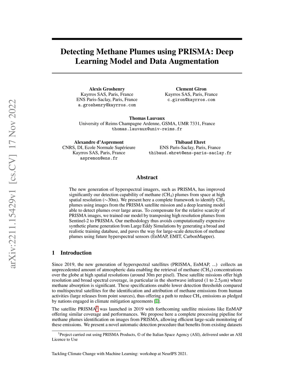 Detecting Methane Plumes using PRISMA: Deep Learning Model and Data