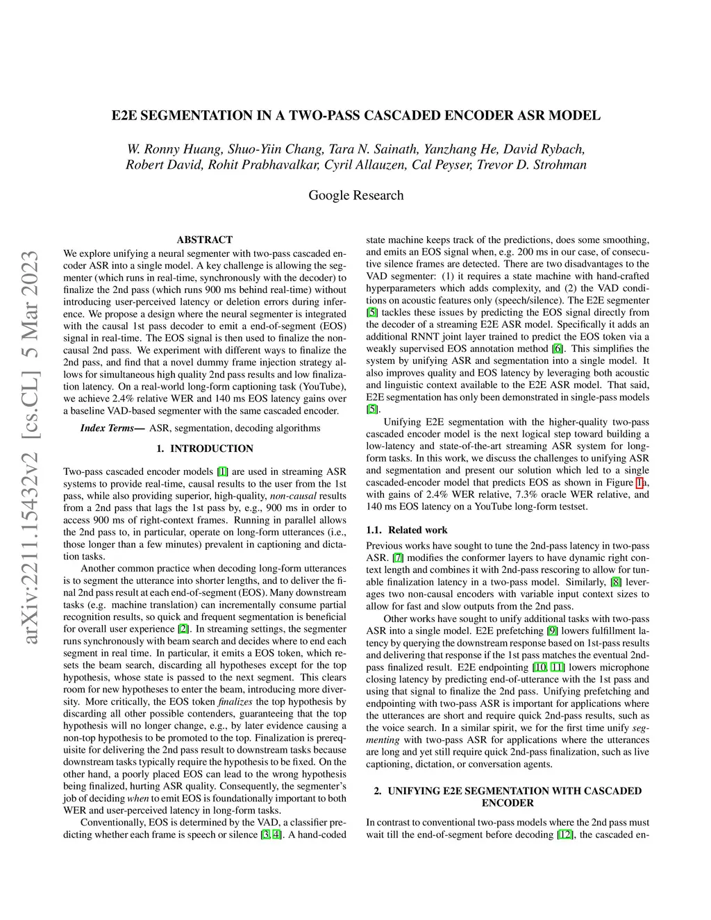 E2E Segmentation in a Two-Pass Cascaded Encoder ASR Model