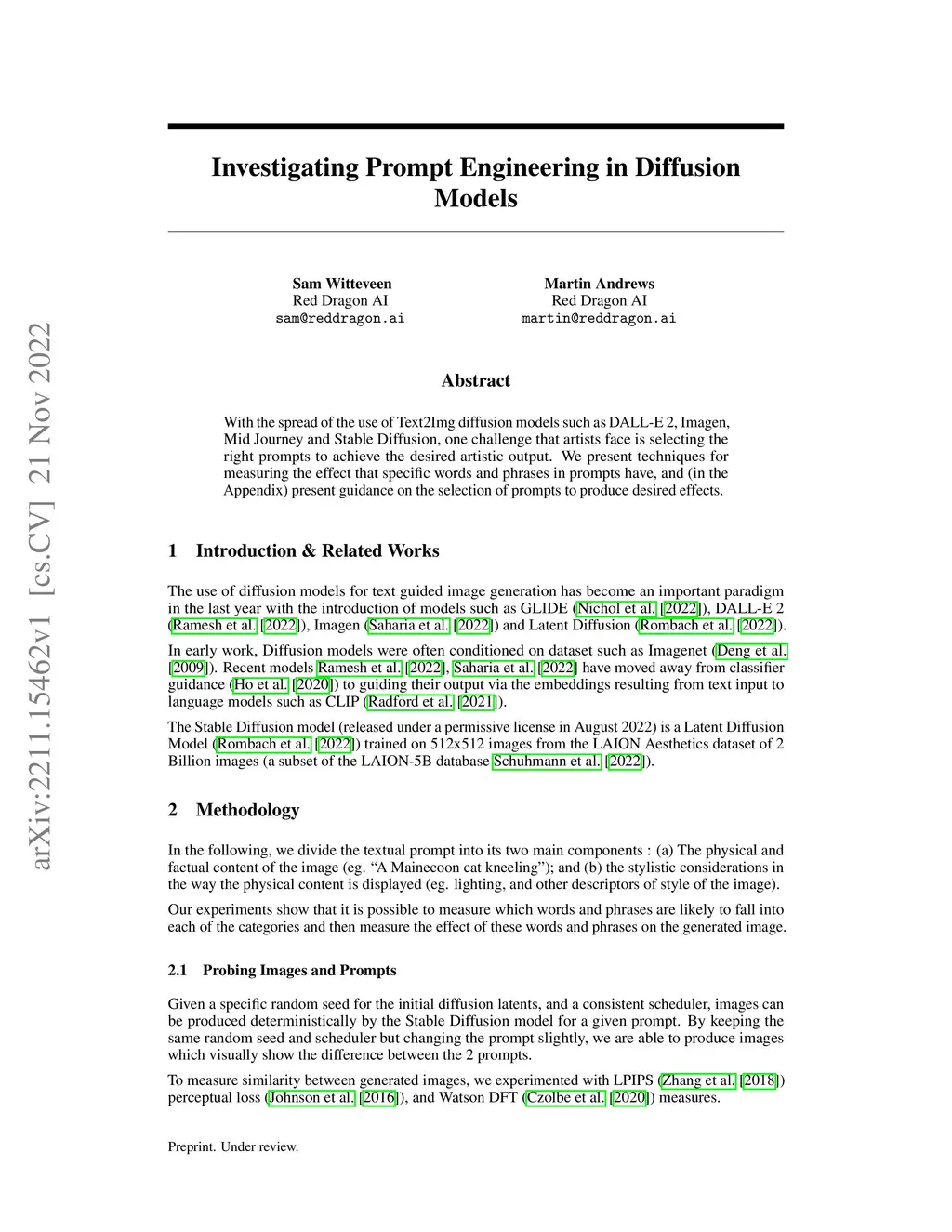 With the spread of the use of Text2Img diffusion models such as DALL-E 2, Imagen, Mid Journey and Stable Diffusion, one challenge that artists face is selecting the right prompts to achieve the desired artistic output. We present techniques for measuring the effect that specific words and phrases in prompts have, and (in the Appendix) present guidance on the selection of prompts to produce desired effects.