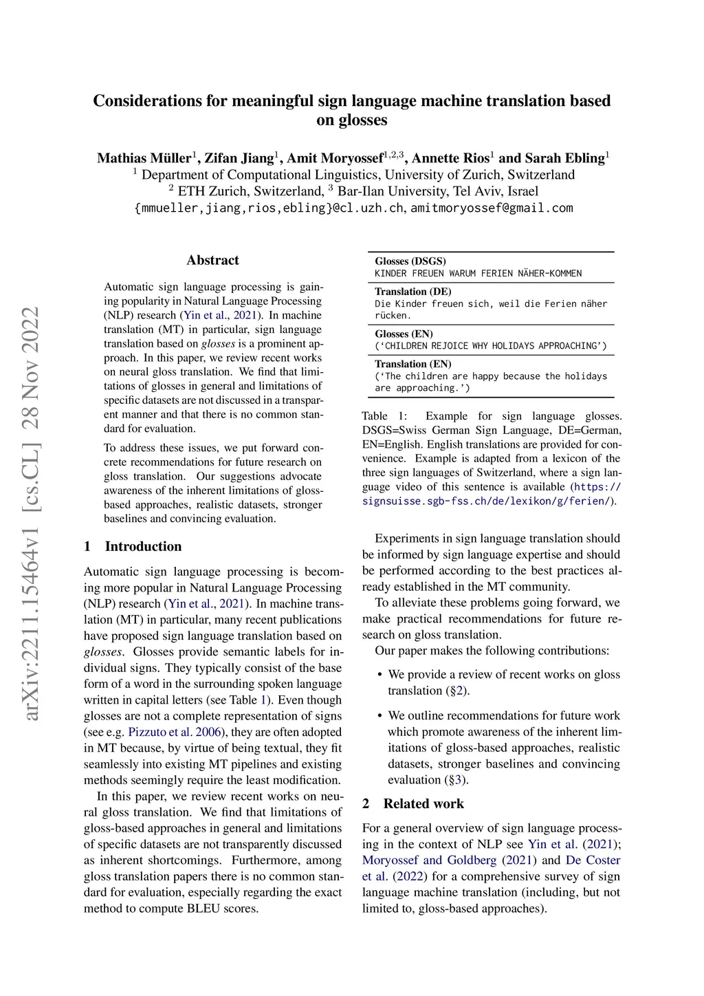 Automatic sign language processing is gaining popularity in Natural Language Processing (NLP) research (Yin et al., 2021). In machine translation (MT) in particular, sign language translation based on glosses is a prominent approach. In this paper, we review recent works on neural gloss translation. We find that limitations of glosses in general and limitations of specific datasets are not discussed in a transparent manner and that there is no common standard for evaluation. To address these issues, we put forward concrete recommendations for future research on gloss translation. Our suggestions advocate awareness of the inherent limitations of gloss-based approaches, realistic datasets, stronger baselines and convincing evaluation.