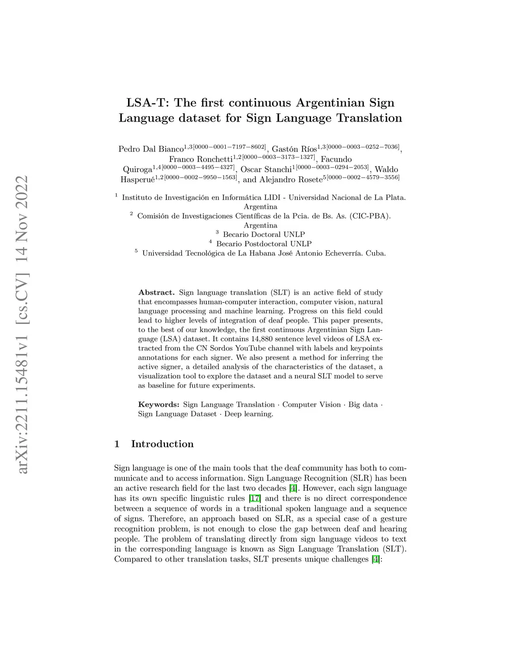 LSA-T: The first continuous Argentinian Sign Language dataset for Sign