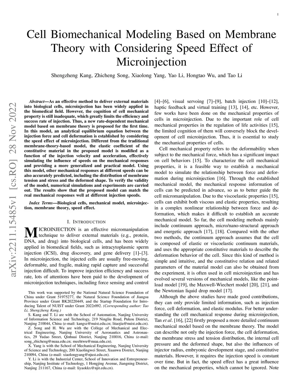 Cell Biomechanical Modeling Based on Membrane Theory with Considering
