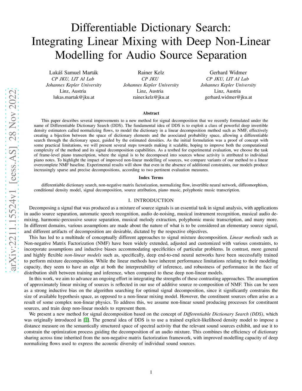 This paper describes several improvements to a new method for signal decomposition that we recently formulated under the name of Differentiable Dictionary Search (DDS). The fundamental idea of DDS is to exploit a class of powerful deep invertible density estimators called normalizing flows, to model the dictionary in a linear decomposition method such as NMF, effectively creating a bijection between the space of dictionary elements and the associated probability space, allowing a differentiable search through the dictionary space, guided by the estimated densities. As the initial formulation was a proof of concept with some practical limitations, we will present several steps towards making it scalable, hoping to improve both the computational complexity of the method and its signal decomposition capabilities. As a testbed for experimental evaluation, we choose the task of frame-level piano transcription, where the signal is to be decomposed into sources whose activity is attributed to individual piano notes. To highlight the impact of improved non-linear modelling of sources, we compare variants of our method to a linear overcomplete NMF baseline. Experimental results will show that even in the absence of additional constraints, our models produce increasingly sparse and precise decompositions, according to two pertinent evaluation measures.