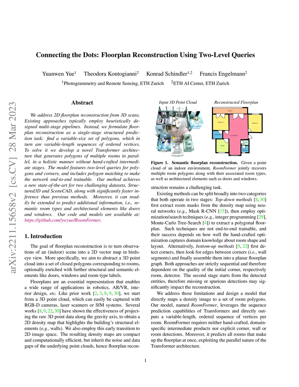 Connecting the Dots: Floorplan Reconstruction Using Two-Level Queries
