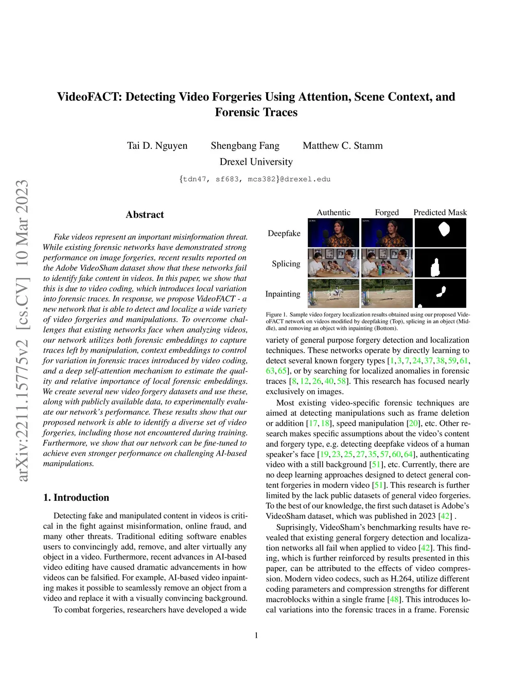 VideoFACT: Detecting Video Forgeries Using Attention, Scene Context, and