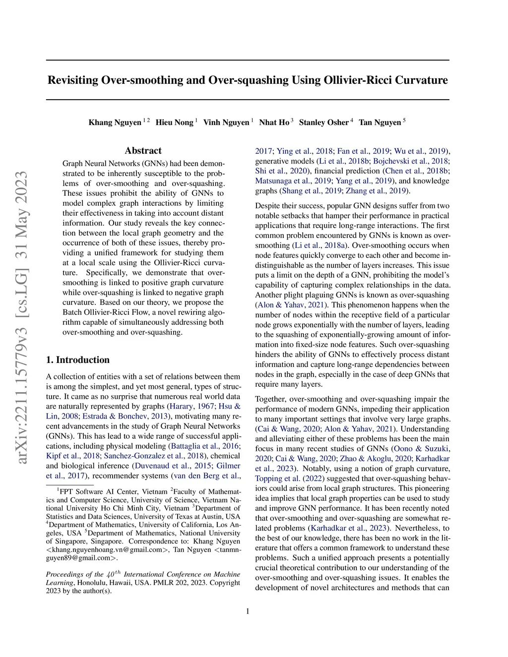 Graph Neural Networks (GNNs) had been demonstrated to be inherently susceptible to the problems of over-smoothing and over-squashing. These issues prohibit the ability of GNNs to model complex graph interactions by limiting their effectiveness in taking into account distant information. Our study reveals the key connection between the local graph geometry and the occurrence of both of these issues, thereby providing a unified framework for studying them at a local scale using the Ollivier-Ricci curvature. Specifically, we demonstrate that over-smoothing is linked to positive graph curvature while over-squashing is linked to negative graph curvature. Based on our theory, we propose the Batch Ollivier-Ricci Flow, a novel rewiring algorithm capable of simultaneously addressing both over-smoothing and over-squashing.