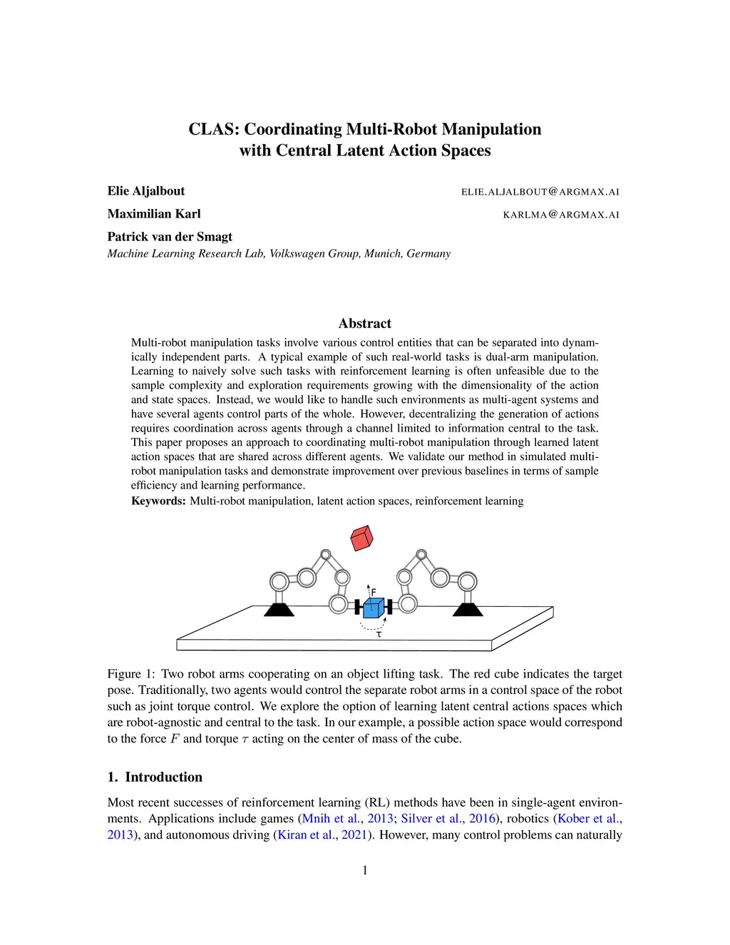 CLAS: Coordinating Multi-Robot Manipulation with Central Latent Action