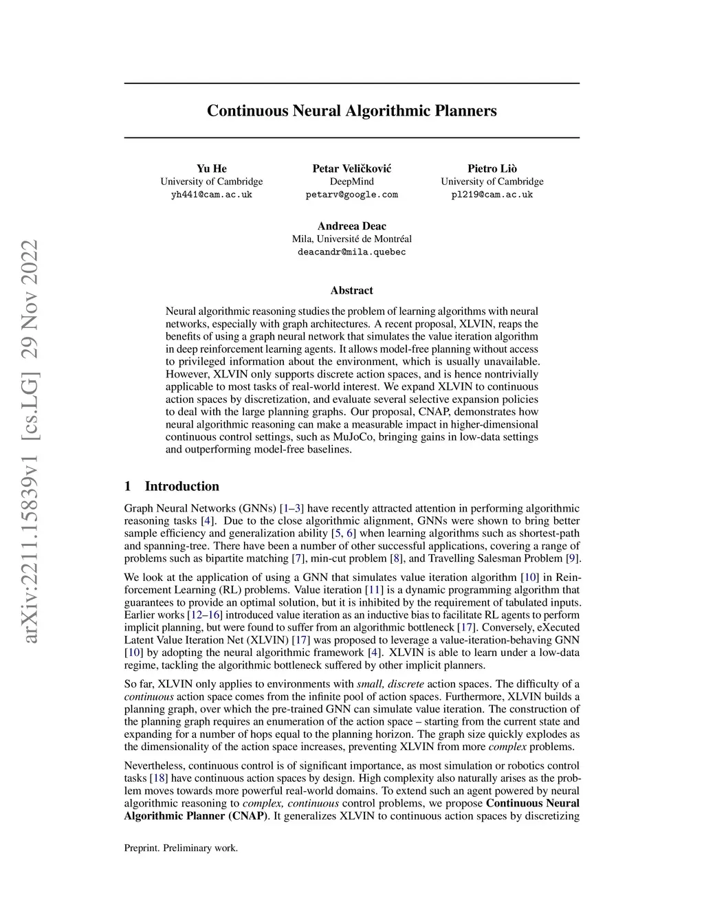 Continuous Neural Algorithmic Planners