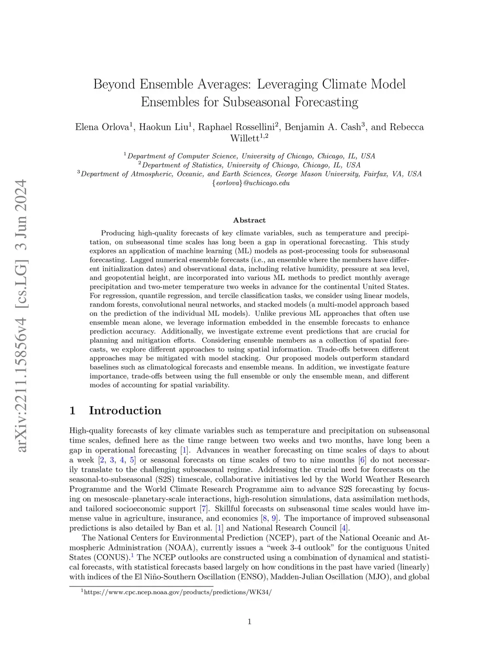 Producing high-quality forecasts of key climate variables, such as temperature and precipitation, on subseasonal time scales has long been a gap in operational forecasting. This study explores an application of machine learning (ML) models as post-processing tools for subseasonal forecasting. Lagged numerical ensemble forecasts (i.e., an ensemble where the members have different initialization dates) and observational data, including relative humidity, pressure at sea level, and geopotential height, are incorporated into various ML methods to predict monthly average precipitation and two-meter temperature two weeks in advance for the continental United States. For regression, quantile regression, and tercile classification tasks, we consider using linear models, random forests, convolutional neural networks, and stacked models (a multi-model approach based on the prediction of the individual ML models). Unlike previous ML approaches that often use ensemble mean alone, we leverage information embedded in the ensemble forecasts to enhance prediction accuracy. Additionally, we investigate extreme event predictions that are crucial for planning and mitigation efforts. Considering ensemble members as a collection of spatial forecasts, we explore different approaches to using spatial information. Trade-offs between different approaches may be mitigated with model stacking. Our proposed models outperform standard baselines such as climatological forecasts and ensemble means. In addition, we investigate feature importance, trade-offs between using the full ensemble or only the ensemble mean, and different modes of accounting for spatial variability.