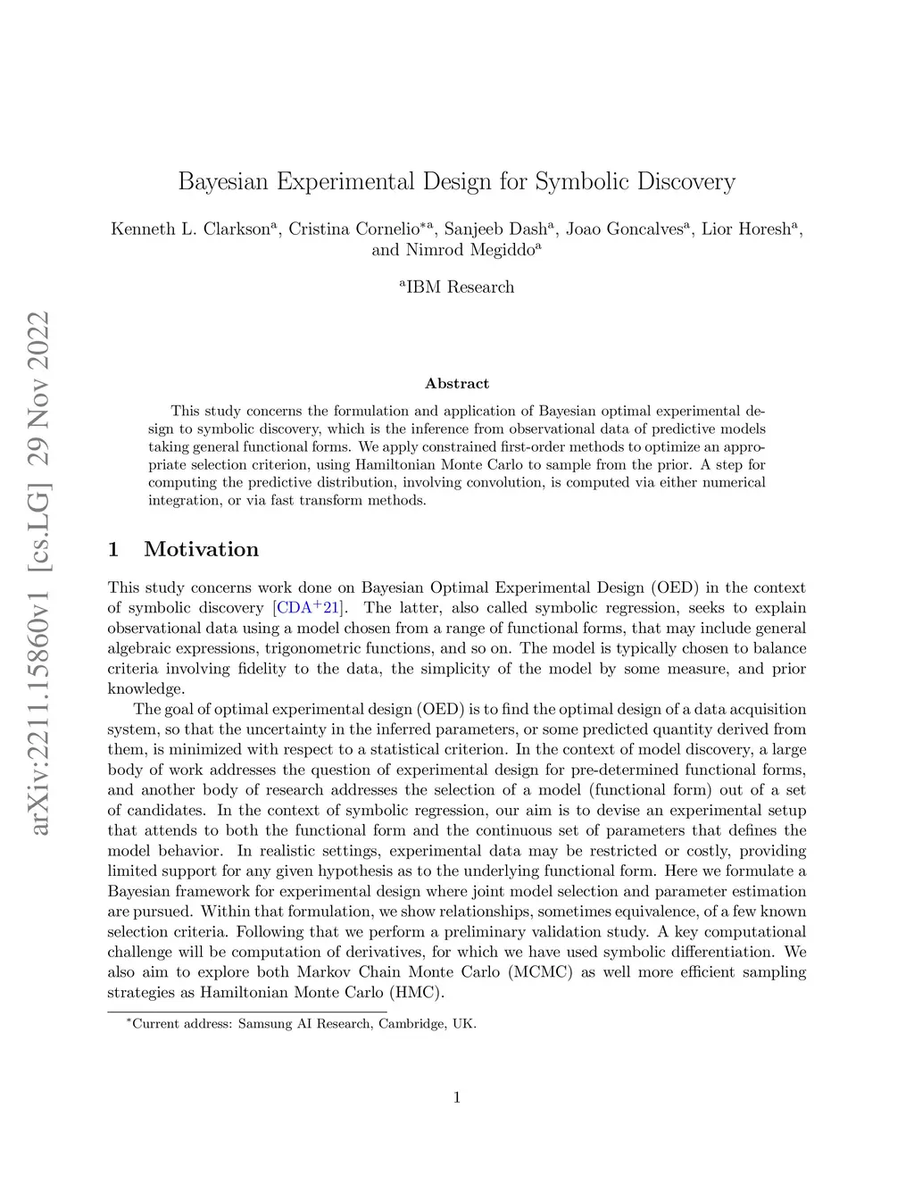 This study concerns the formulation and application of Bayesian optimal experimental design to symbolic discovery, which is the inference from observational data of predictive models taking general functional forms. We apply constrained first-order methods to optimize an appropriate selection criterion, using Hamiltonian Monte Carlo to sample from the prior. A step for computing the predictive distribution, involving convolution, is computed via either numerical integration, or via fast transform methods.