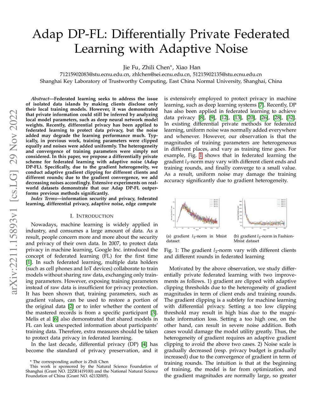 Adap DP-FL: Differentially Private Federated Learning with Adaptive