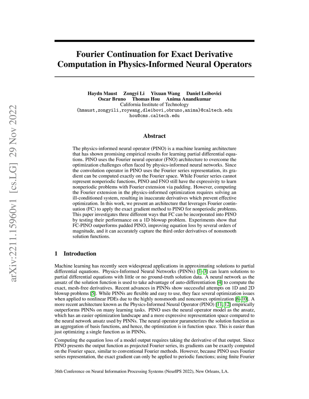The physics-informed neural operator (PINO) is a machine learning paradigm that has demonstrated promising results for learning solutions to partial differential equations (PDEs). It leverages the Fourier Neural Operator to learn solution operators in function spaces and leverages physics losses during training to penalize deviations from known physics laws. Spectral differentiation provides an efficient way to compute derivatives for the physics losses, but it inherently assumes periodicity. When applied to non-periodic functions, this assumption can lead to significant errors, including Gibbs phenomena near domain boundaries which degrade the accuracy of both function representations and derivative computations. To overcome this limitation, we introduce the FC-PINO (Fourier-Continuation-based Physics-Informed Neural Operator) architecture which extends the accuracy and efficiency of PINO and spectral differentiation to non-periodic and non-smooth PDEs. In FC-PINO, we propose integrating Fourier continuation into the PINO framework, and test two different continuation approaches: FC-Legendre and FC-Gram. By transforming non-periodic signals into periodic functions on extended domains in a well-conditioned manner, Fourier continuation enables fast and accurate derivative computations. This approach avoids the discretization sensitivity of finite differences and the memory overhead of automatic differentiation. We demonstrate that standard PINO fails (without padding) or struggles (even with padding) to solve non-periodic and non-smooth PDEs with high precision, across challenging benchmarks. In contrast, the proposed FC-PINO provides accurate, robust, and scalable solutions, substantially outperforming PINO alternatives, and demonstrating that Fourier continuation is critical for extending PINO to a wider range of PDE problems when high-precision solutions are needed.