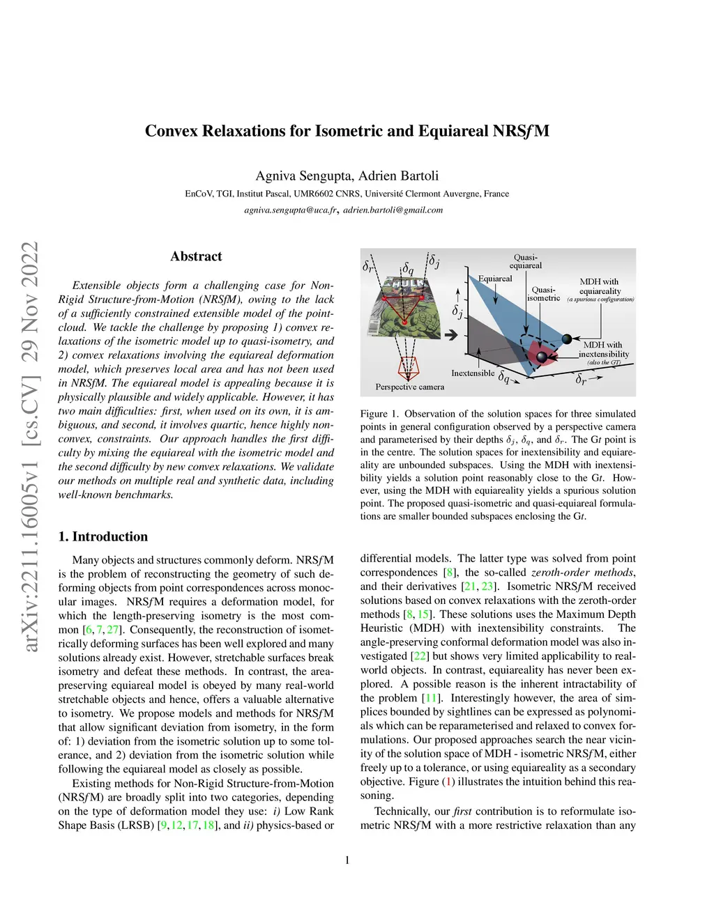 Extensible objects form a challenging case for NRSfM, owing to the lack of a sufficiently constrained extensible model of the point-cloud. We tackle the challenge by proposing 1) convex relaxations of the isometric model up to quasi-isometry, and 2) convex relaxations involving the equiareal deformation model, which preserves local area and has not been used in NRSfM. The equiareal model is appealing because it is physically plausible and widely applicable. However, it has two main difficulties: first, when used on its own, it is ambiguous, and second, it involves quartic, hence highly nonconvex, constraints. Our approach handles the first difficulty by mixing the equiareal with the isometric model and the second difficulty by new convex relaxations. We validate our methods on multiple real and synthetic data, including well-known benchmarks.