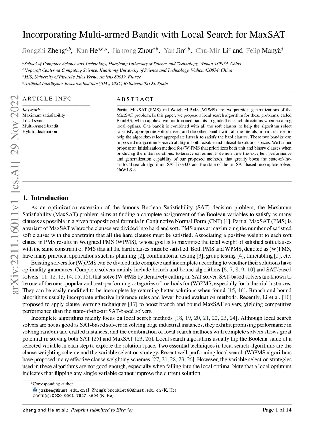 Incorporating Multi-armed Bandit with Local Search for MaxSAT