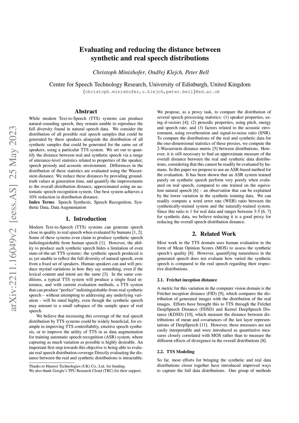 Evaluating and reducing the distance between synthetic and real speech