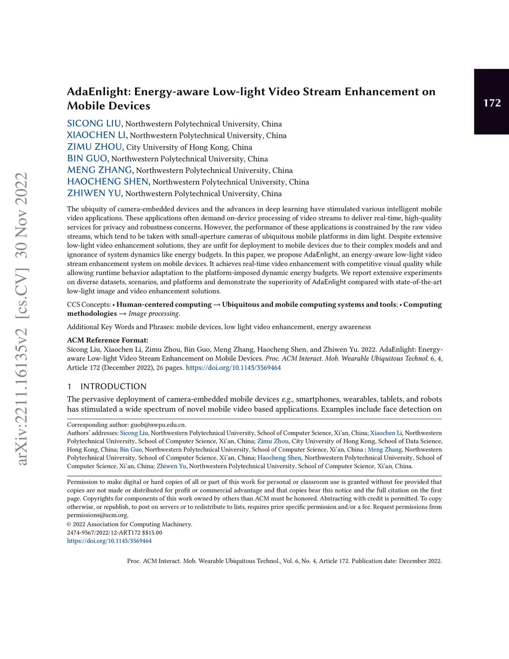 AdaEnlight: Energy-aware Low-light Video Stream Enhancement on Mobile