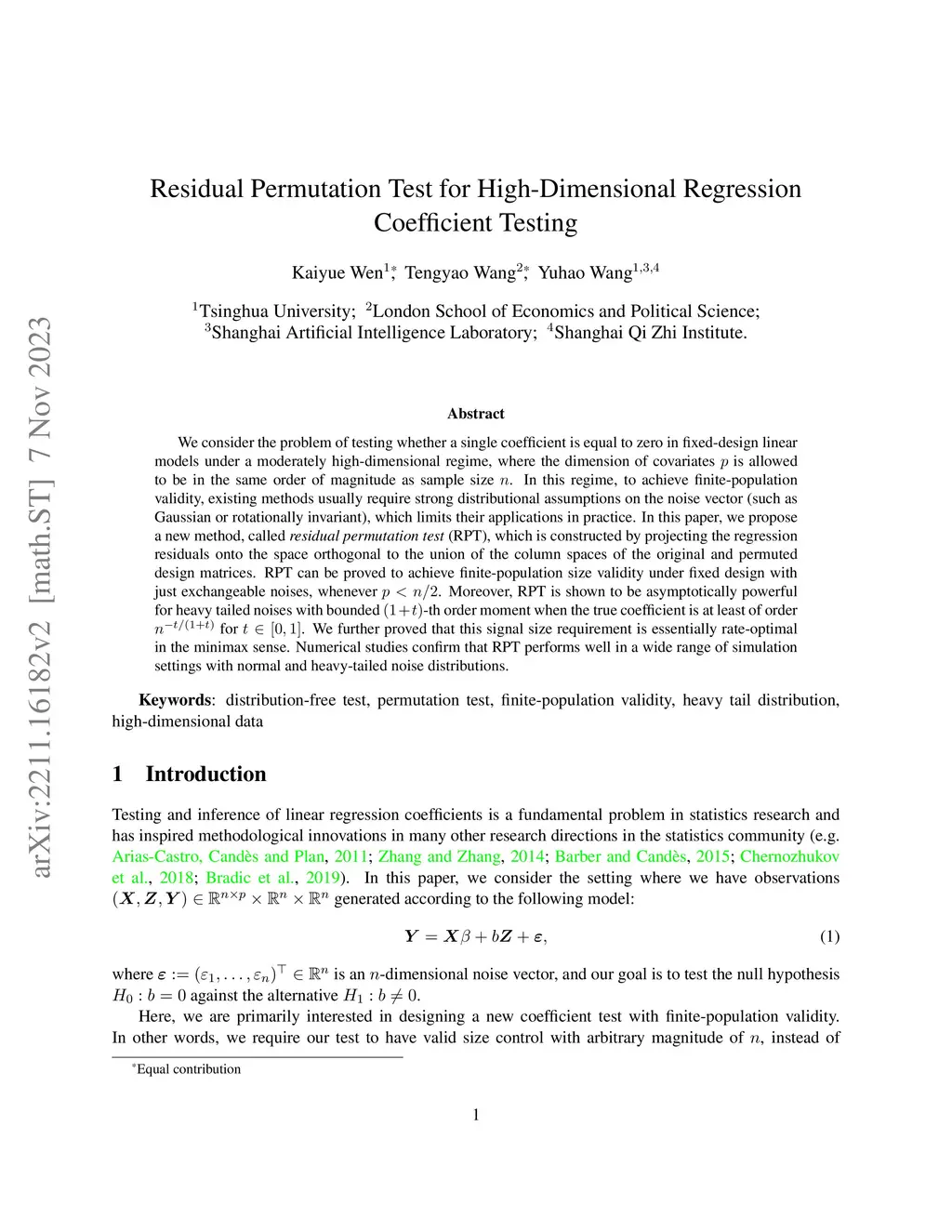 Residual Permutation Test for High-Dimensional Regression Coefficient