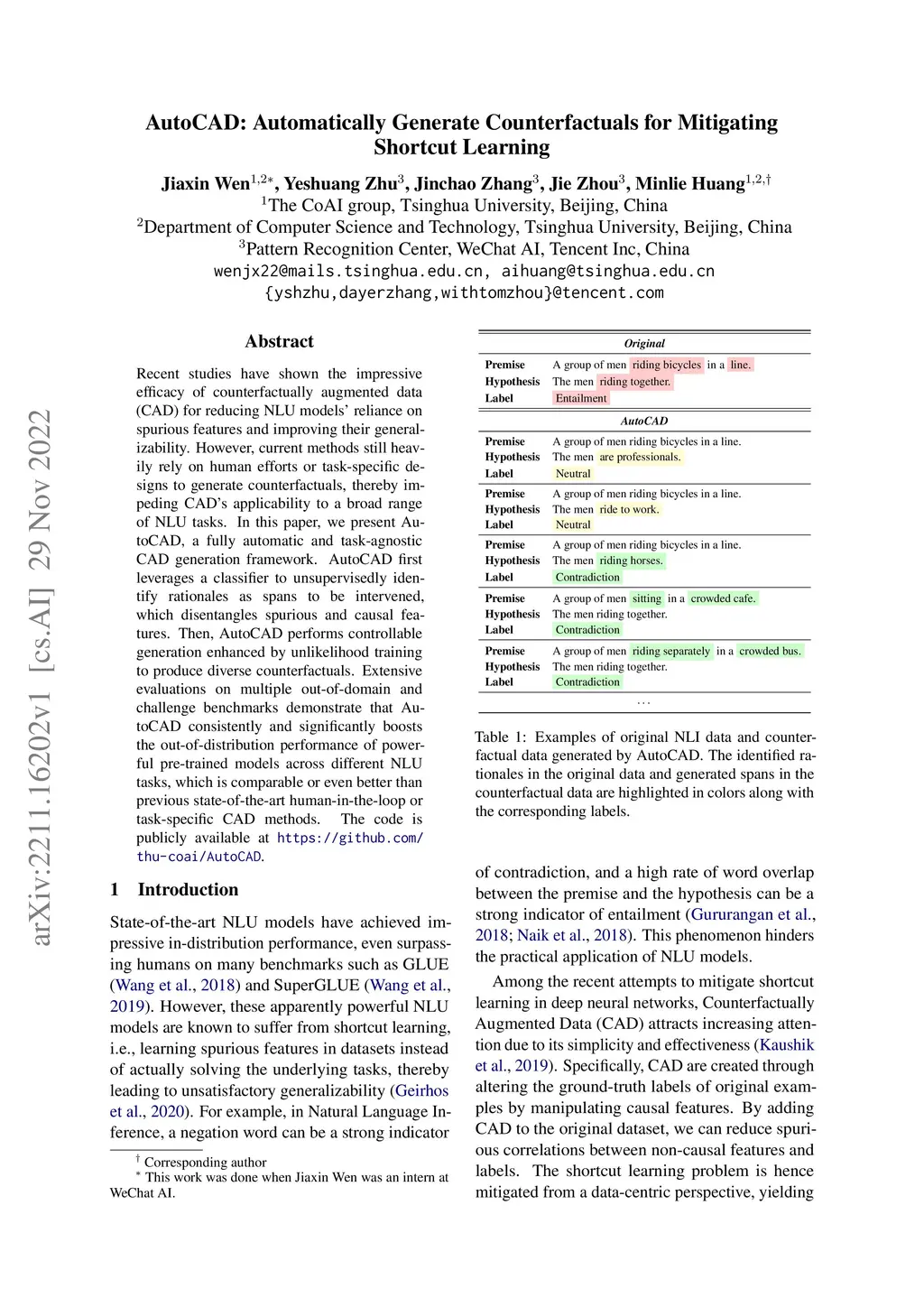AutoCAD: Automatically Generating Counterfactuals for Mitigating
