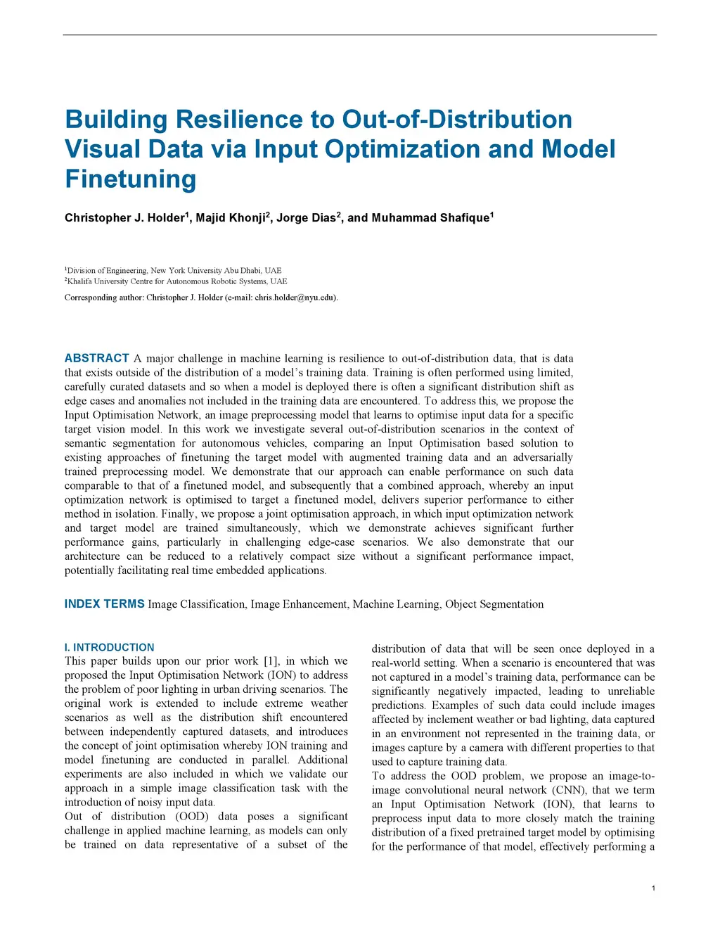 A major challenge in machine learning is resilience to out-of-distribution data, that is data that exists outside of the distribution of a model's training data. Training is often performed using limited, carefully curated datasets and so when a model is deployed there is often a significant distribution shift as edge cases and anomalies not included in the training data are encountered. To address this, we propose the Input Optimisation Network, an image preprocessing model that learns to optimise input data for a specific target vision model. In this work we investigate several out-of-distribution scenarios in the context of semantic segmentation for autonomous vehicles, comparing an Input Optimisation based solution to existing approaches of finetuning the target model with augmented training data and an adversarially trained preprocessing model. We demonstrate that our approach can enable performance on such data comparable to that of a finetuned model, and subsequently that a combined approach, whereby an input optimization network is optimised to target a finetuned model, delivers superior performance to either method in isolation. Finally, we propose a joint optimisation approach, in which input optimization network and target model are trained simultaneously, which we demonstrate achieves significant further performance gains, particularly in challenging edge-case scenarios. We also demonstrate that our architecture can be reduced to a relatively compact size without a significant performance impact, potentially facilitating real time embedded applications.
