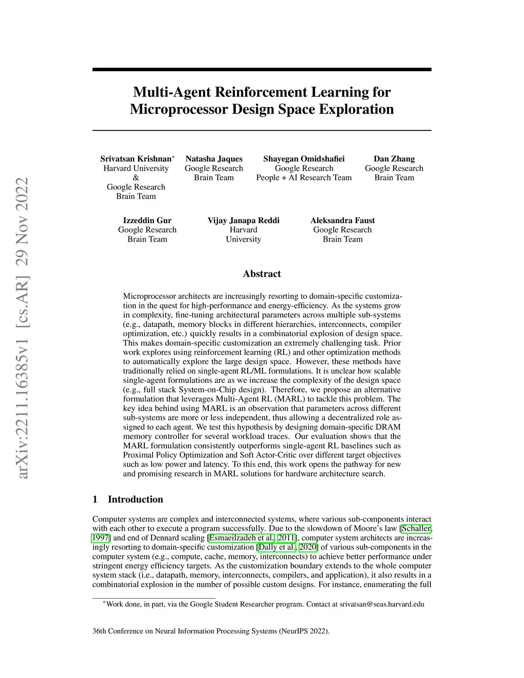 Multi-Agent Reinforcement Learning for Microprocessor Design Space