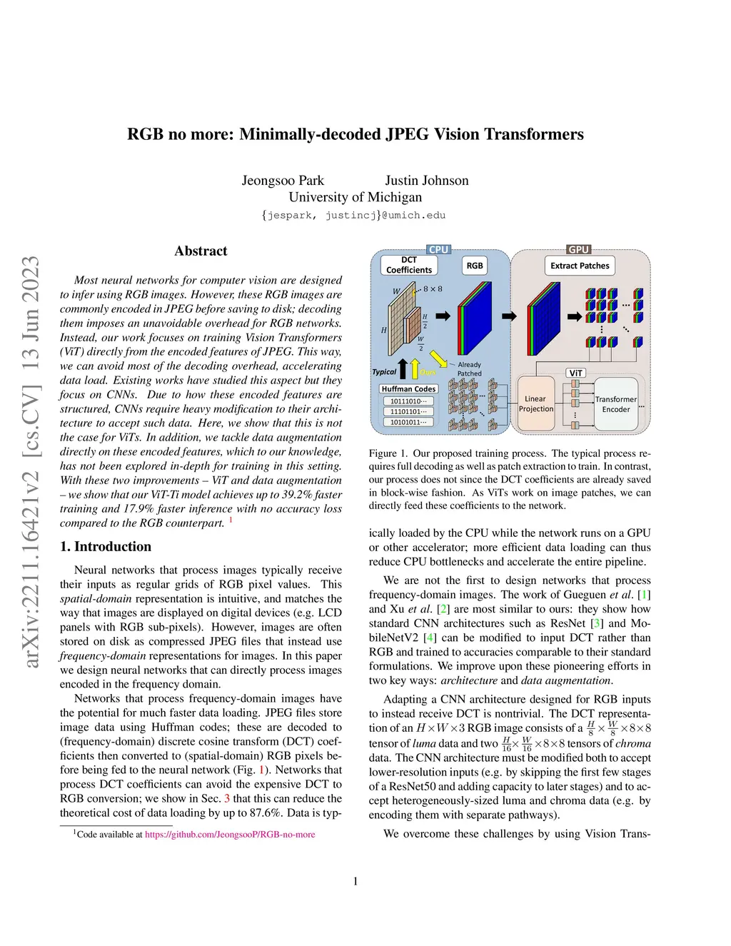 RGB no more: Minimally-decoded JPEG Vision Transformers