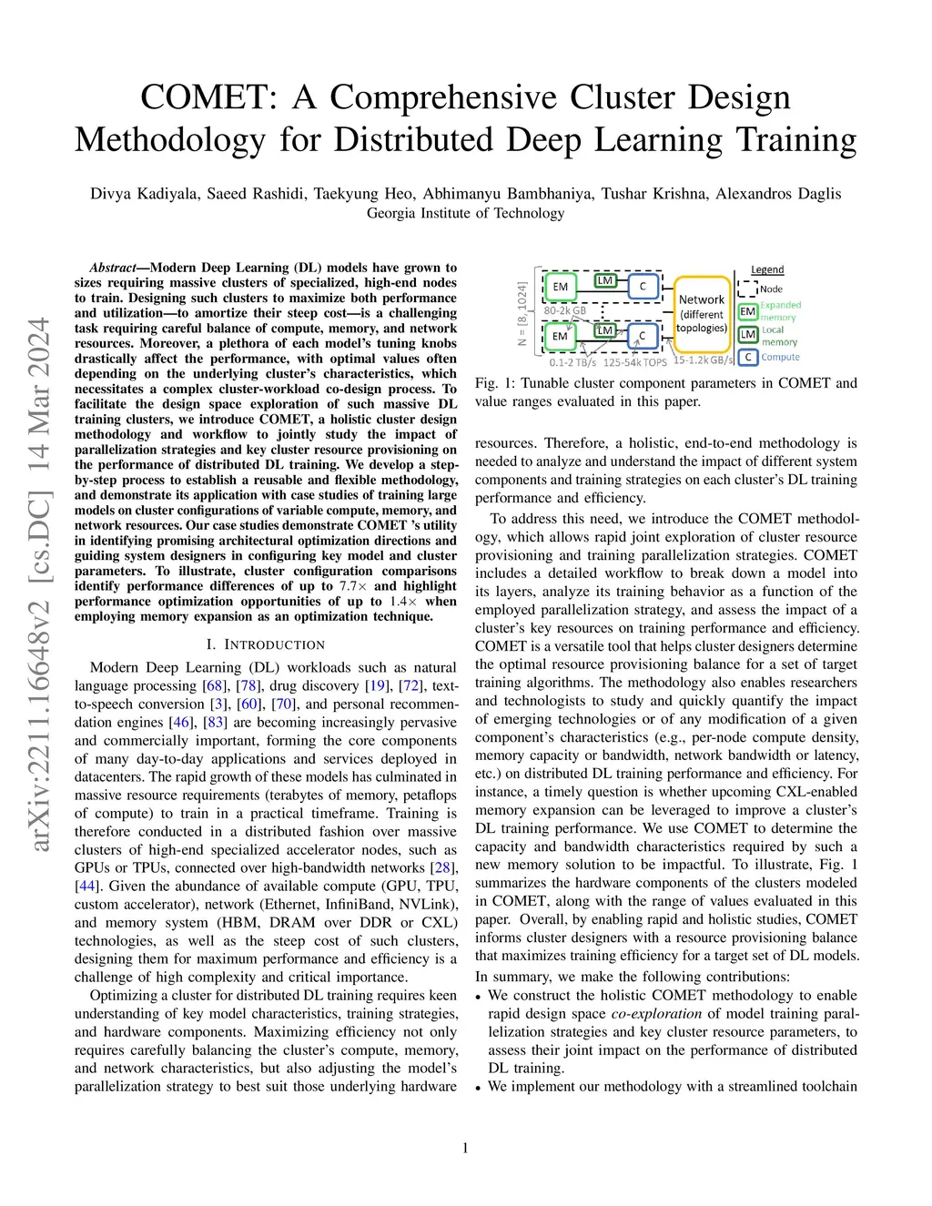 COMET: A Comprehensive Cluster Design Methodology for Distributed Deep